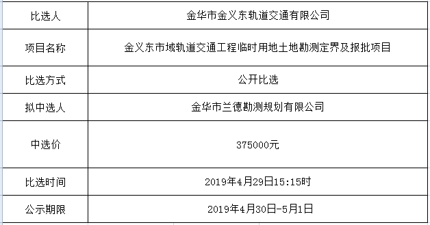 金華市金義東軌道交通有限公司運(yùn)營(yíng)環(huán)境長(zhǎng)效管理系統(tǒng)項(xiàng)目中標(biāo)候選人公示