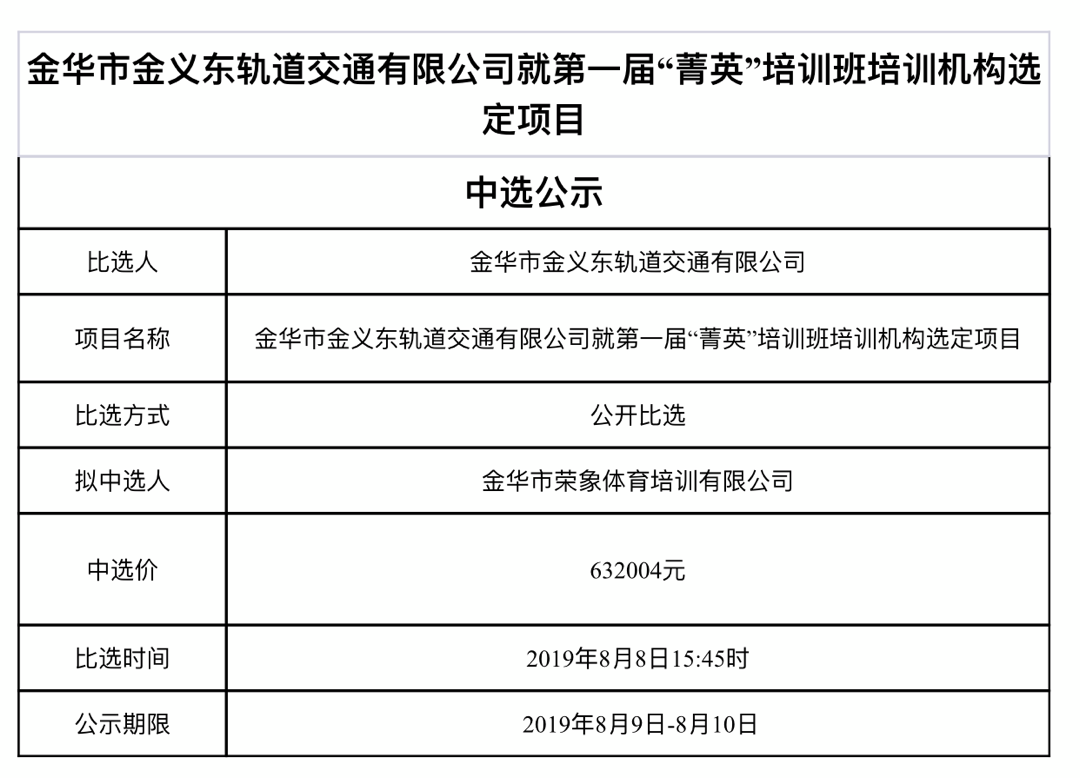 金華市金義東軌道交通有限公司運營環(huán)境長效管理系統(tǒng)項目中標(biāo)候選人公示