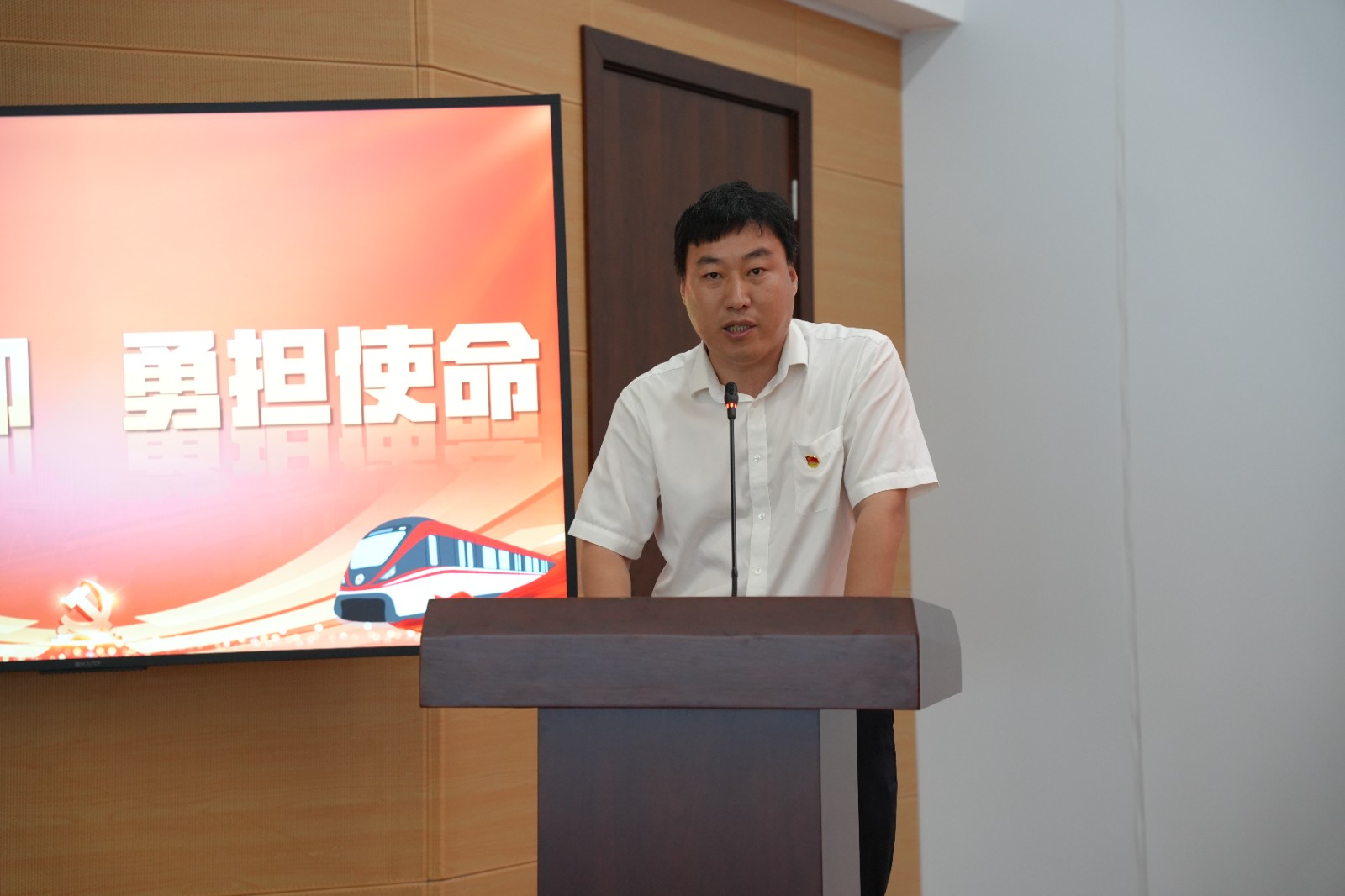 紅軌青歌技能工作室成員舒海飛、吳鍇、陳程以《紅色傳承鑄鐵軌,車輛人的安全承諾》為題,帶領(lǐng)大家體會(huì)在黨旗引領(lǐng)下黨員群眾齊心協(xié)力,攻克技術(shù)難關(guān)的動(dòng)人故事。